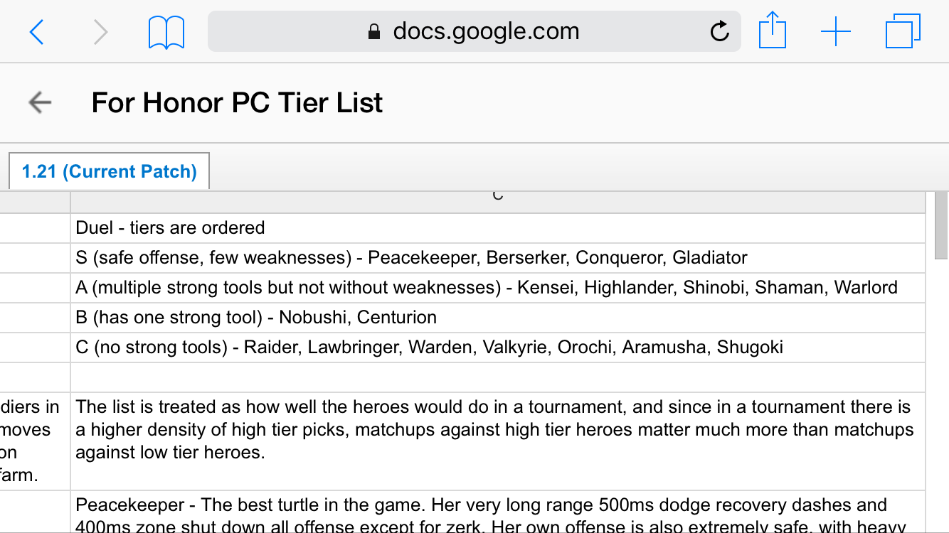 For Honor Tier List Season 6 Source Tier List