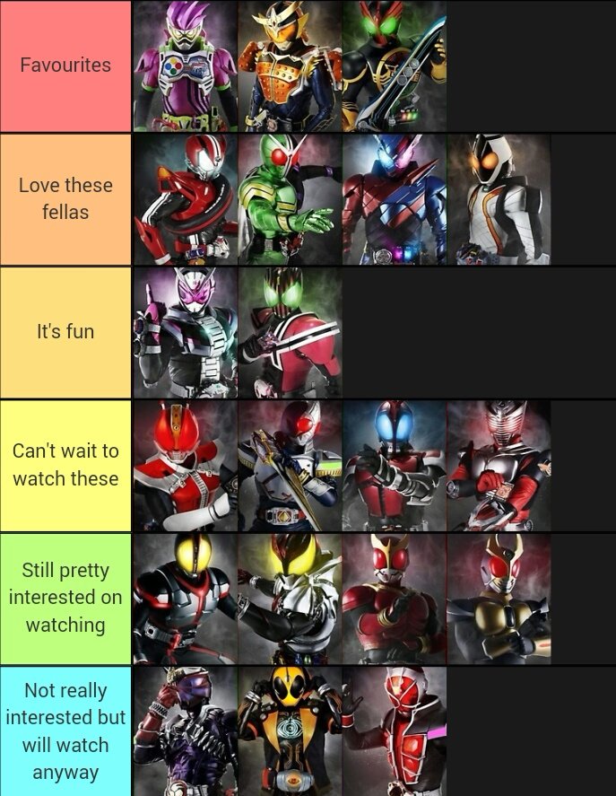 Tier list kamen rider. This list only includes main usersidentities and does not include characters from supporting medias such as manga novels games or magazine stories. All photos credit to. Welcome to our rider tier list for fgo fategrand order. Click savedownload and add a title and description. Oct 26 2011 reputation. Characters are ordered within tiers.